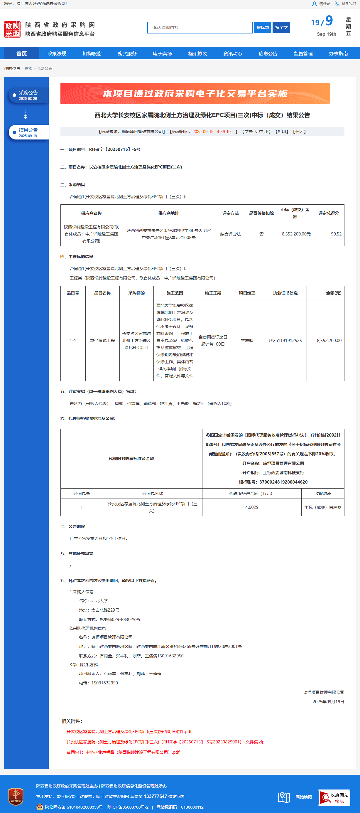 西北大学长安校区家属院北侧土方治理及绿化EPC项目(三次)中标(成交)结果公告