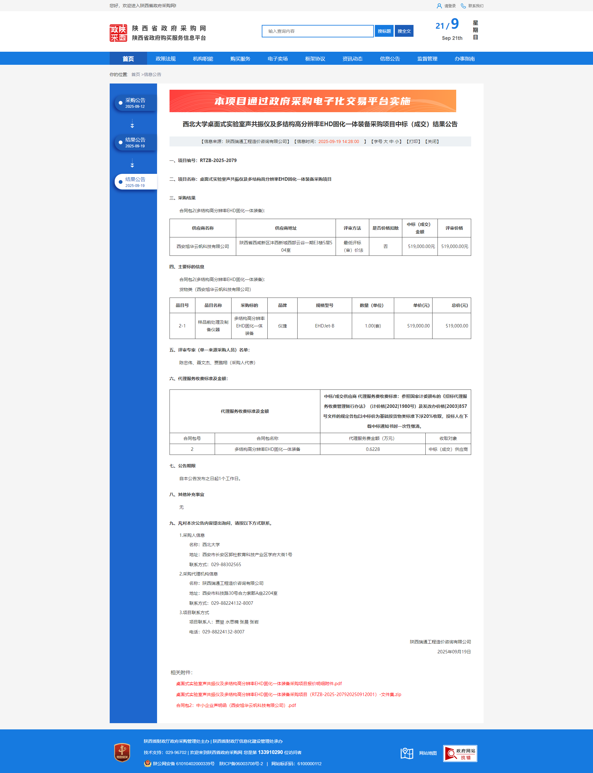 西北大学桌面式实验室声共振仪及多结构高分辨率EHD固化一体装备采购项目中标(成交)结果公告