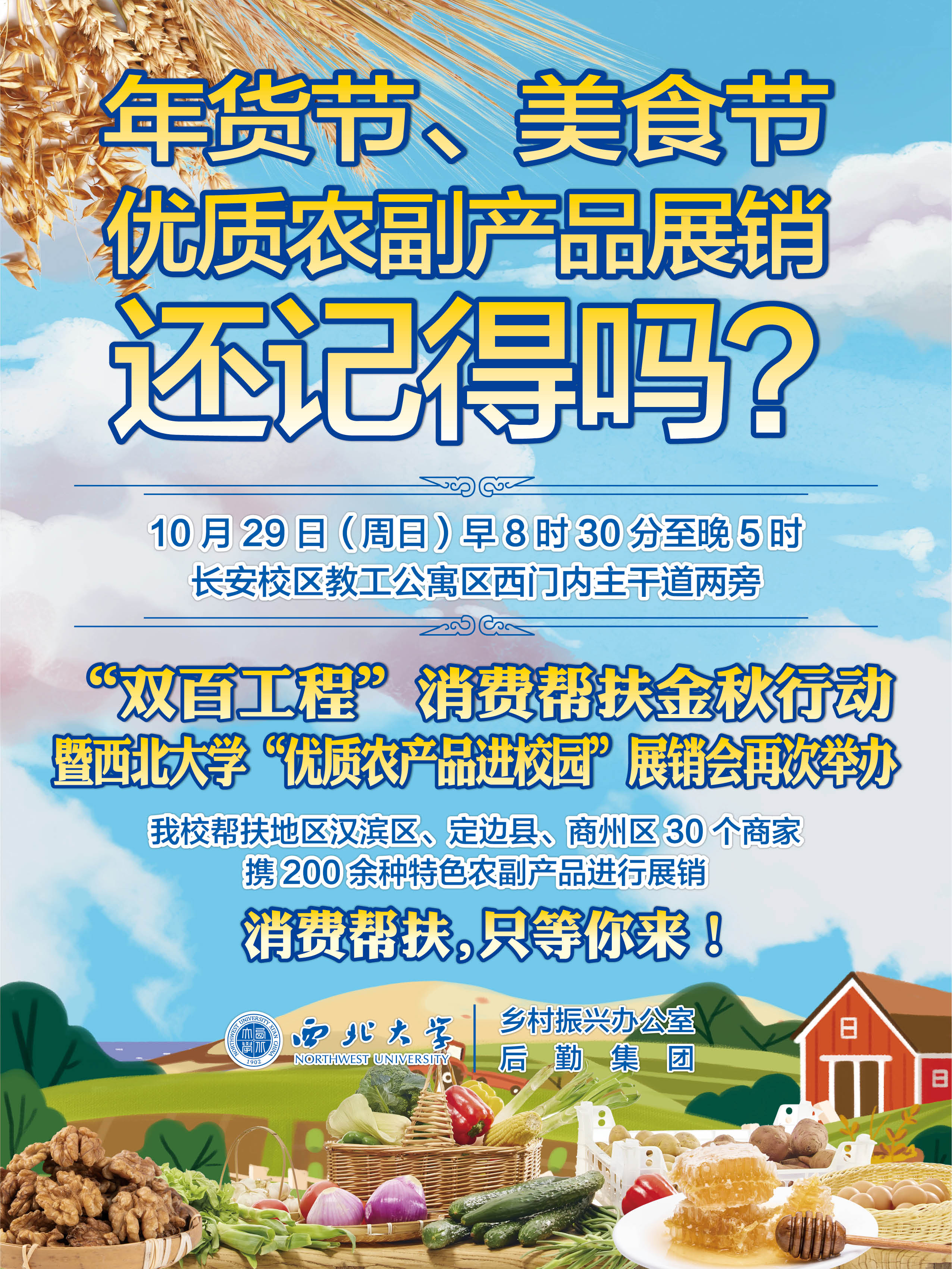 “双百工程”消费帮扶金秋行动暨西北大学第六届“优质农产品进高校”展销会海报