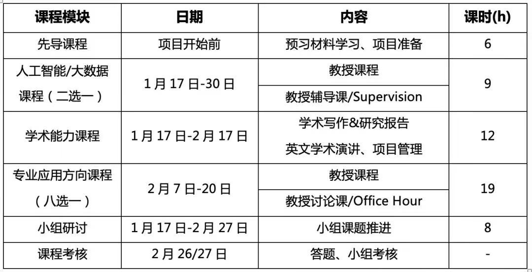 共计48学时,其中34学时教授直播与辅导课,6学时学术技能提升直播课,8学时小组研讨。