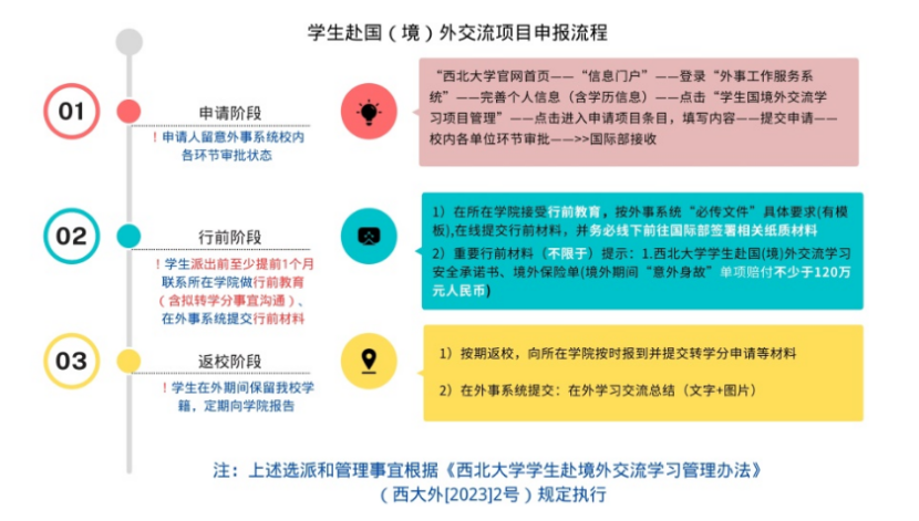 1.【校内申请】:有意向申报学生于2025年48日前完成西北大学外事工作服务系统在线申请,并跟进系统审核进度,于411日前获得除国际部外校内单位审核通过。