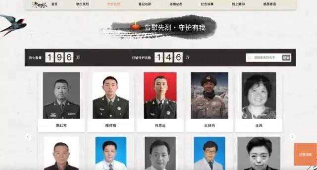 点击烈士姓名或烈士照片,或者在搜索框输入烈士姓名进行搜索,可快速给想要祭扫的烈士进行网上祭扫,您的每一次祭扫都会是对先烈的一次守护,所有烈士的被守护次数通过此版块也可进行查看。