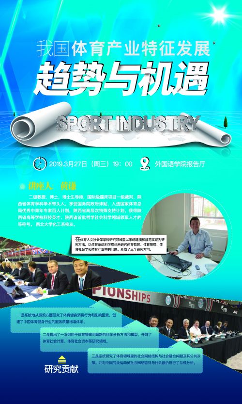 西北大学2019年体育文化节体育文化讲座——我国体育产业特征发展趋势与机遇