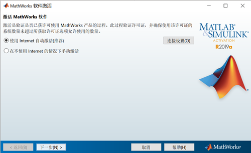 3.选择“使用Internet自动激活”,并输入MathWorks账户(西北大学邮箱),点击“下一步”直至激活完成。(如果您忘记了密码,您可以使用后缀为nwu.edu.cn以及stumail.nwu.edu.cn的邮箱,进入www.mathworks.cn官网自助找回)