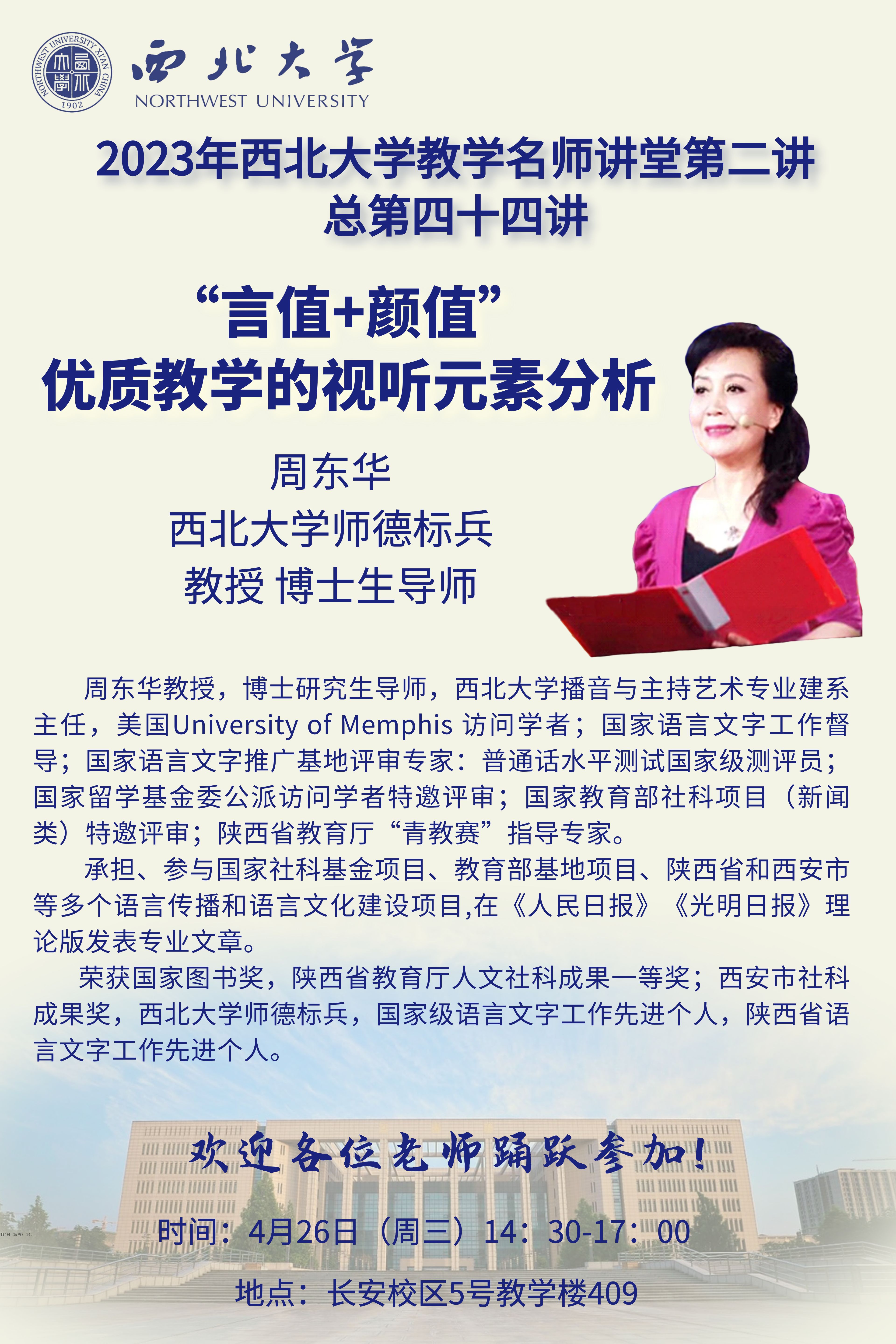 2023年西北大学教学名师讲堂第二讲 ——“言值+颜值”优质教学的视听元素分析