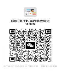 请参赛人员及时扫码,加入“第十四届西北大学讲课比赛”微信群,以便通知后续比赛相关事宜。