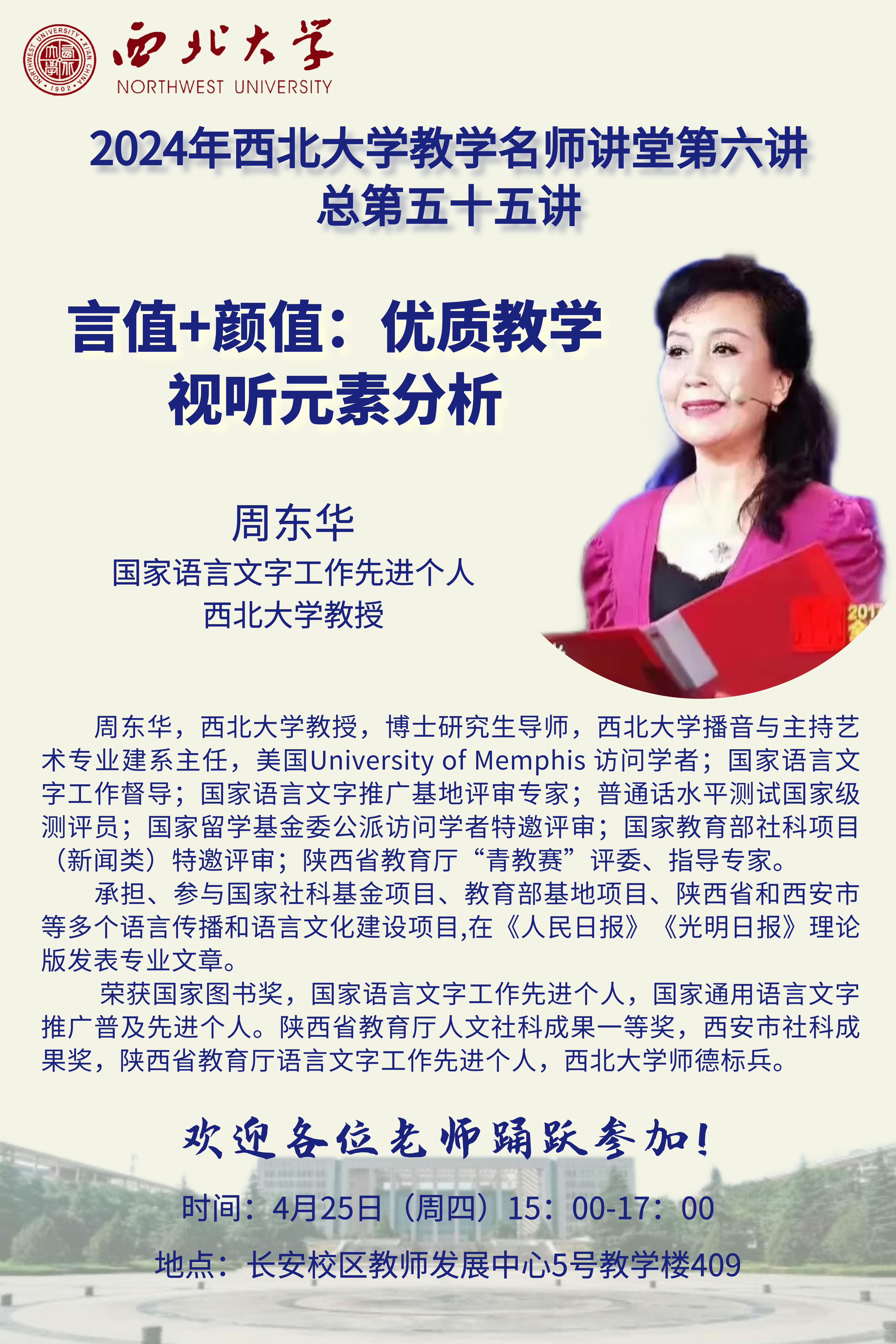 2024年西北大学教学名师讲堂第六讲——言值+颜值:优质教学视听元素分析