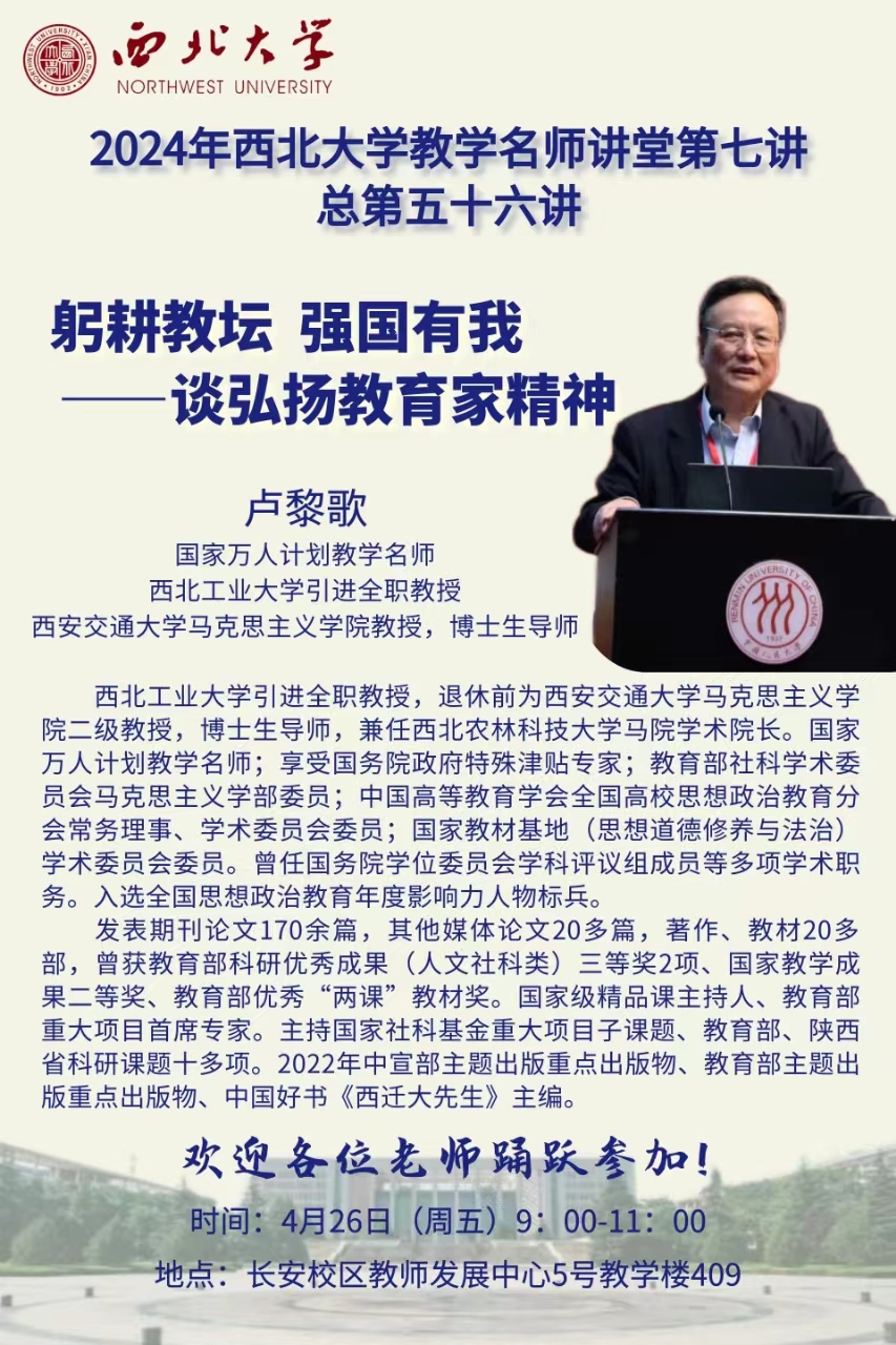 2024年西北大学教学名师讲堂第七讲——躬耕教坛 强国有我—谈弘扬教育家精神
