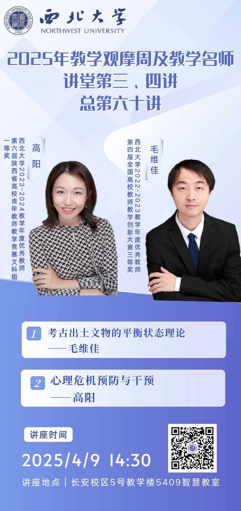 2025年西北大学“教学观摩周”及“教学名师讲堂”活动第三、四讲海报
