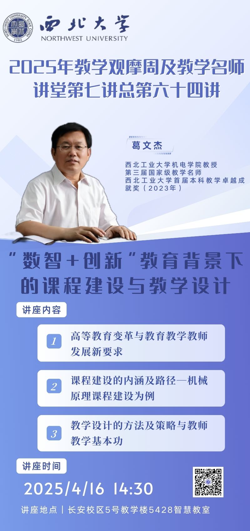 2025年西北大学“教学观摩周”及“教学名师讲堂”活动第七讲海报
