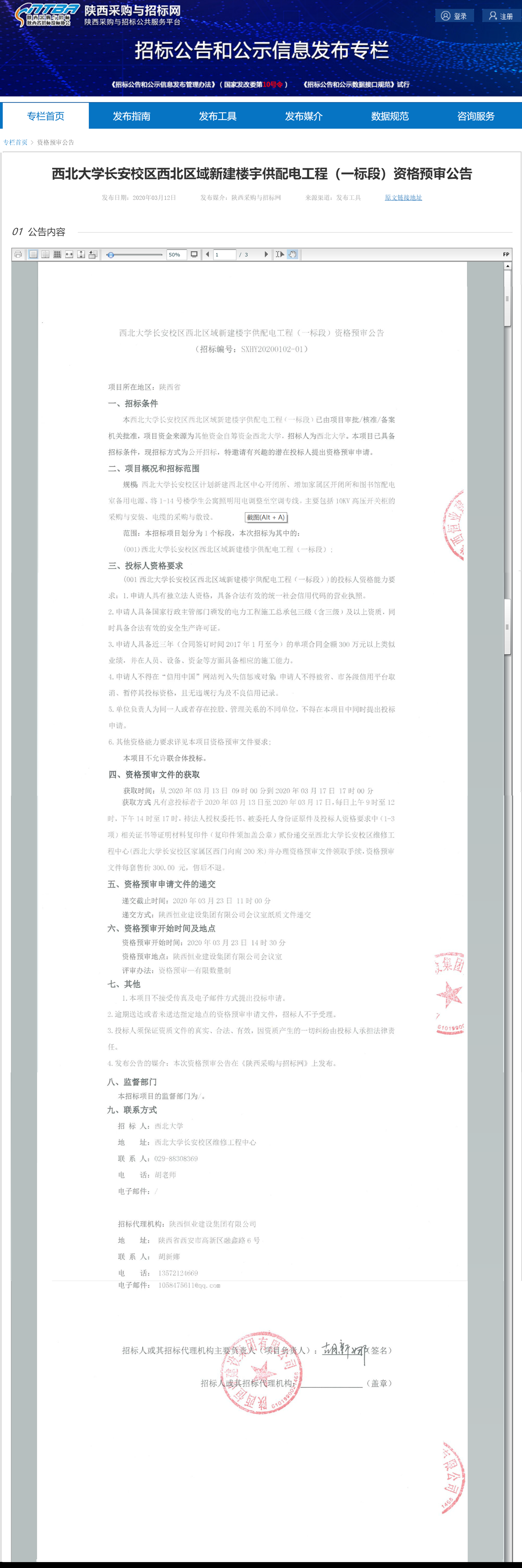 西北大学长安校区西北区域新建楼宇供配电工程(一标段)资格预审公告 作者: 编辑: 时间:2020-03-13 09:42 http://bulletin.sntba.com/qualifyBulletin/2020-03-12/165817.html
