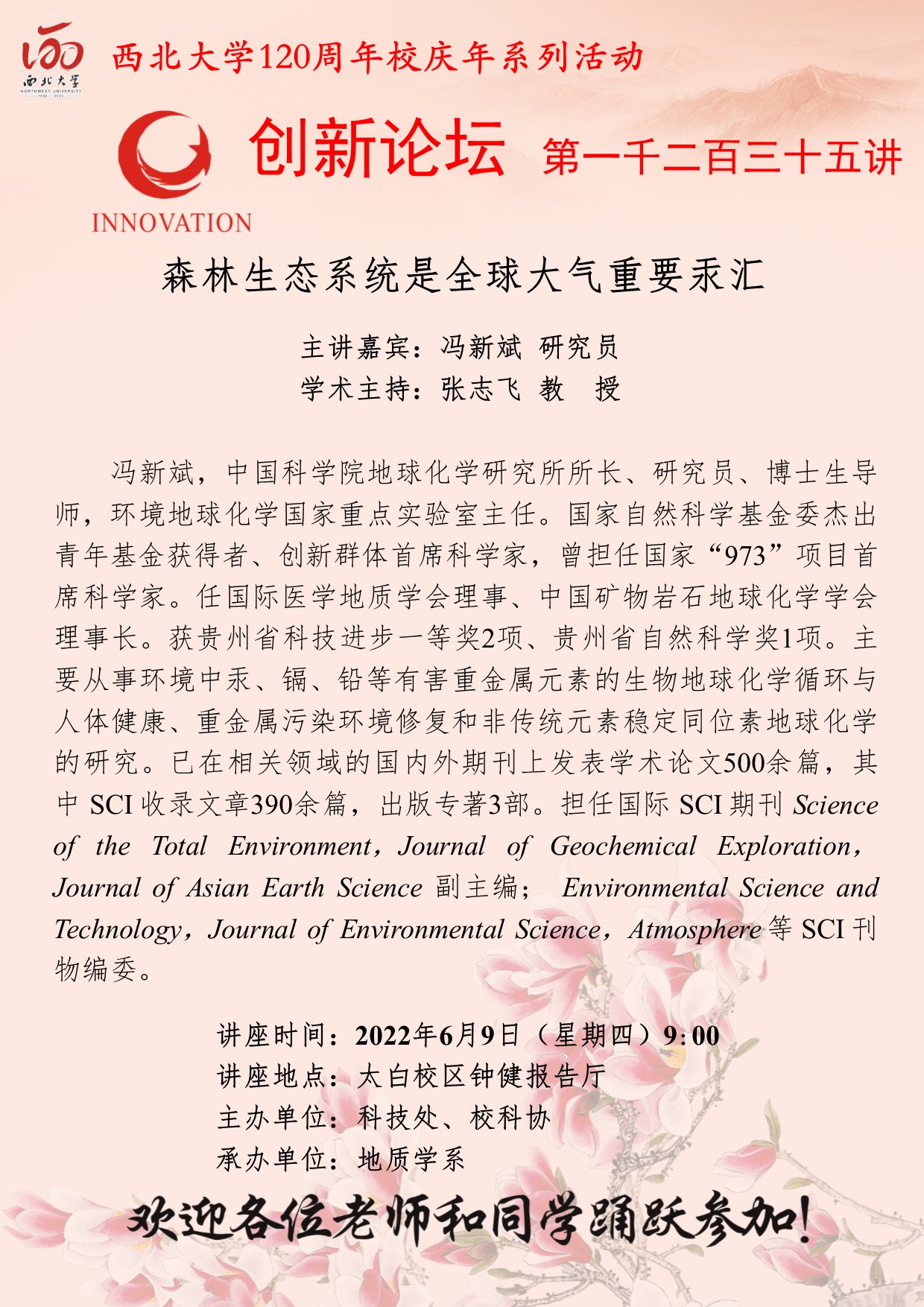 西北大学创新论坛第一千二百三十五讲暨120周年校庆年系列活动:森林生态系统是全球大气重要汞汇