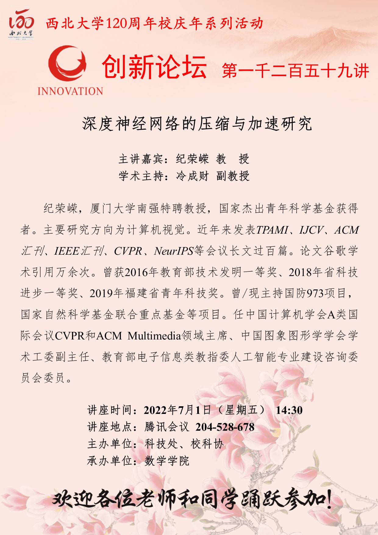 西北大学创新论坛第一千二百六十讲暨120周年校庆年系列活动:从新冠病毒到急性呼吸窘迫综合征