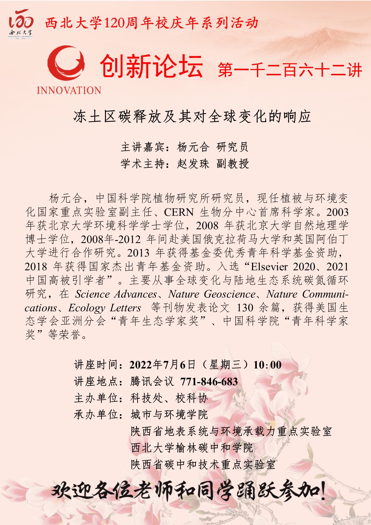 西北大学创新论坛第一千二百六十一讲暨120周年校庆年系列活动:全球森林对云量的影响与高水平论文写作经验分享
