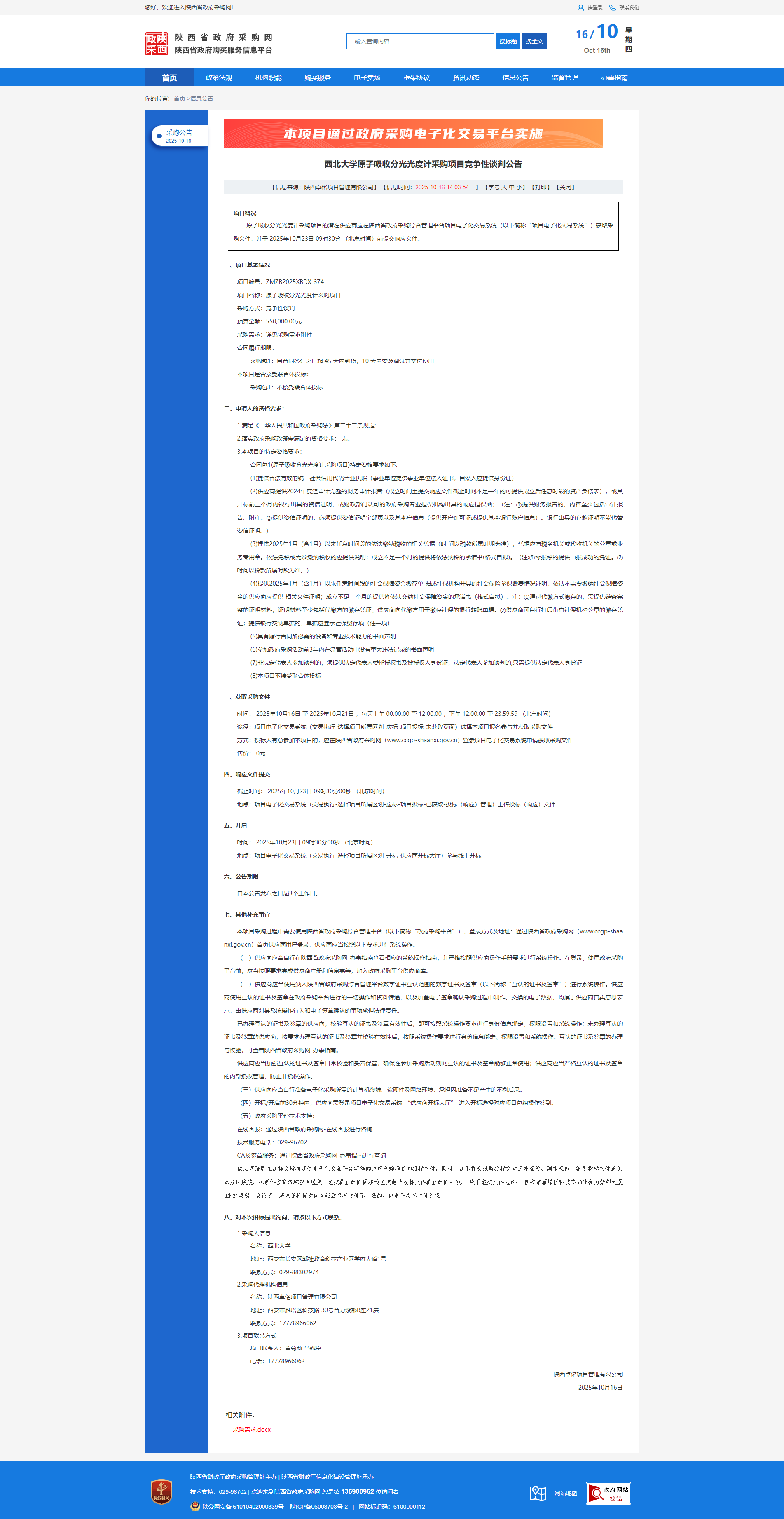 西北大学原子吸收分光光度计采购项目竞争性谈判公告